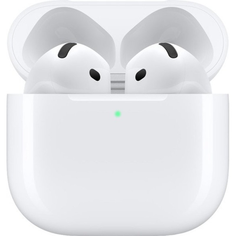 Apple AirPods 4 (MXP63) - це навушники покоління 2024 року. Завдяки динамічним випромінювачам і вбудованому чіпу Apple H2, вони забезпечують чистий звук із підтримкою адаптивного еквалайзера та просторового аудіо (Spatial Audio), яке адаптується під рухи голови, створюючи ефект повного занурення в музику або фільми. Навушники виконані у форм-факторі вкладишів з відкритим акустичним оформленням, що забезпечує комфорт навіть при тривалому використанні. Корпус захищений за стандартом IP54, що гарантує стійкість до вологи та пилу, роблячи їх ідеальними для активного способу життя. Apple AirPods 4 (MXP63) підтримують бездротове під'єднання через Bluetooth 5.3 і сумісні з кодеком AAC-ELD, забезпечуючи стабільну передачу даних і мінімальні затримки. Одного заряду вистачає на 5 годин прослуховування музики, а із зарядним кейсом - до 30 годин. Функція швидкого заряджання дає змогу за 5 хвилин отримати до 1 години роботи. Зарядний кейс Apple AirPods 4 (MXP63) підтримує зарядку через USB-C і бездротову зарядку.