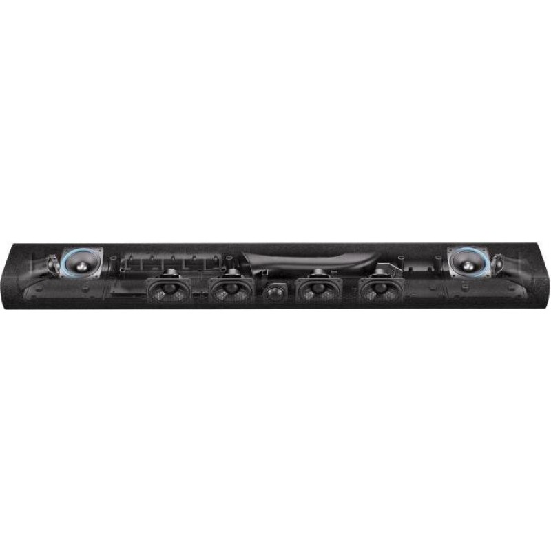 Саундбар Enchant 900, сабвуфер Enchant Sub, 2x бездротова колонка Enchant Speaker, пульт дистанційного керування з батарейками, кабель HDMI, кабель живлення, 2x Lподібних кронштейна для настінного монтажу з гвинтами, посібник користувача