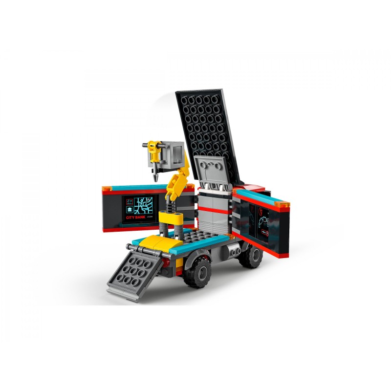 C ігровим набором «Погоня поліції в банку» LEGO City (60317) на вас чекають нескінченні динамічні пригоди. У ньому на вас чекають функціональна будівля банку, сміттєва вантажівка, яка перетворюється на машину для пограбування, поліцейський вертоліт, поліцейська вантажівка та 6 мініфігурок, включаючи 5 популярних персонажів із серіалу «ЛЕГО Сіті: пригоди». Дорожня плита дозволяє поєднати модель з іншими ігровими наборами LEGO. У цей будівельний набір LEGO входить покрокова друкована інструкція зі збирання, а у безкоштовному додатку LEGO Building Instructions для смартфонів та планшетів є інтерактивний електронний посібник. Його інтуїтивно зрозумілі інструменти масштабування та повороту дозволяють дітям у процесі збирання розглядати кожну модель з усіх боків. Що в коробці? — все, що потрібно дітям, щоб побудувати багатофункціональну будівлю банку, вантажівку злодюжок для пограбування, поліцейський гелікоптер і поліцейську вантажівку, а також 6 мініфігурок, включаючи п'ять персонажів серіалу «ЛЕГО Сіті». Особливості та функції – діти можуть розкласти вантажівку шахраїв, щоб дістати витяг з відбійним молотком, проломити частину стіни банку та стріляти мережею з поліцейського вертольота. Включає аксесуари для міні-фігурок LEGO - в цей ігровий набір з поліцейськими входить безліч забавних аксесуарів для творчої гри, включаючи банкноти, ліхтарик, телефон і наручники, що світиться в темряві.