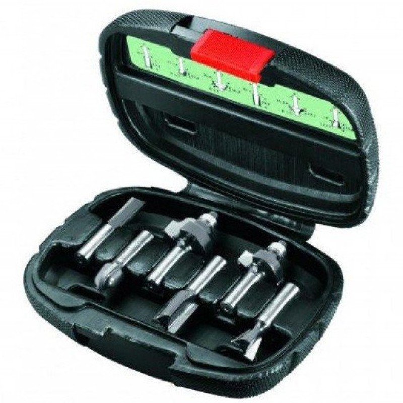 Центрувальний стрижень; Копіювальна втулка; Пазова фреза (O 8 мм) (2608628381); Цангові патрони (3 шт); Ріжковий ключ; Паралельний упор; Всмоктуючий перехідник; Набір фрез (6 шт) (2607019463); чемодан