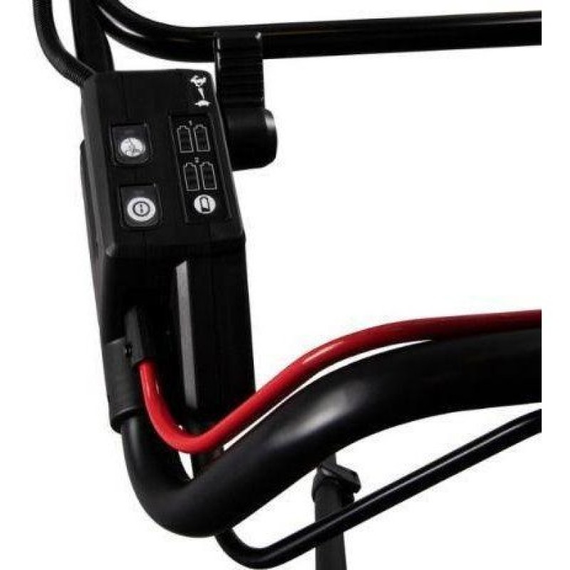 Працює від 4 акумуляторів. 8-позиційне регулювання висоти скошування.