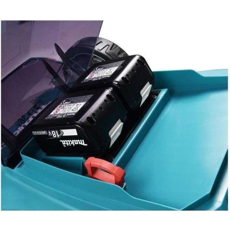 Працює від двох акумуляторів. 10-позиційне регулювання висоти скошування. Постачається без АКБ та ЗУ.