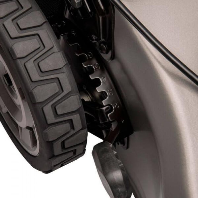 Працює від двох акумуляторів. 10-позиційне регулювання висоти скошування. Поставляється без акумулятора та зарядного пристрою.