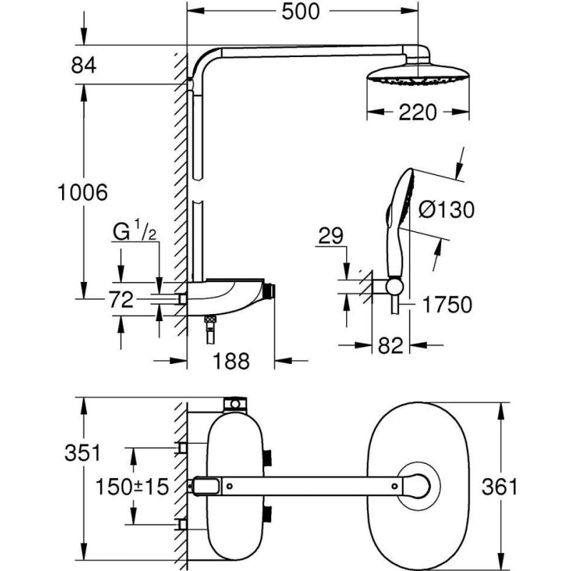 Душова система GROHE Rainshower System SmartControl 360 MONO 26361000