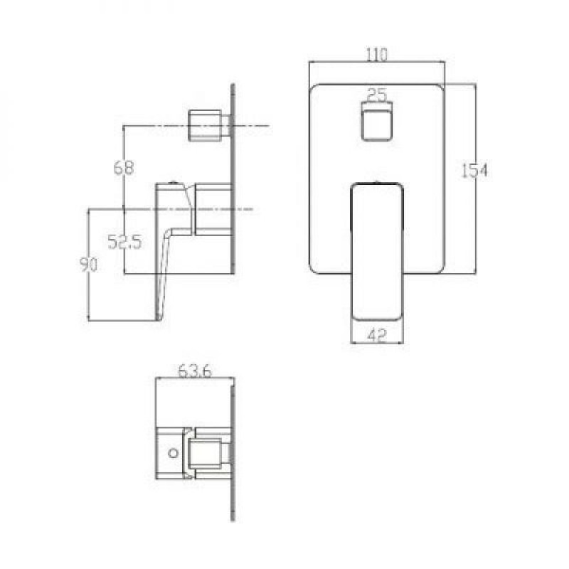 Мінімальна глибина для установки 6 см. Два входи для гарячої та холодної води 1/2", два виходи змішаної води 1/2".