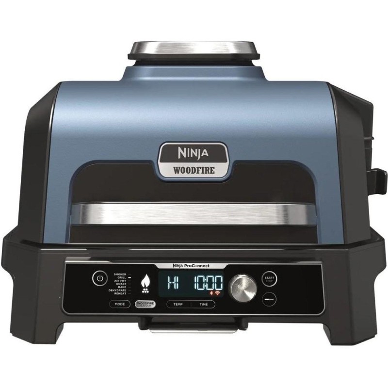 7 функцій приготування: Гриль; Копчення; Фрітюр; Випічка; Дегідратація; Жарка; Підігрів. Управління через мобільний додаток. Велика місткість: для 10 бургерів або 6 стейків. Інтелектуальна система приготування із термощупом. Технологія натурального димного смаку. Водонепроникний корпус, що відповідає класу IPX4. Кошик для хрустких страв. Пластина для гриля з антипригарним покриттям. Піддон для жиру та підкладка. 2 набори пелет Ninja Woodfire та лопатка. Розмір тарілки для гриля: 45см х 29см, приблизно 10 бургерів/20 сосисок/2 курки по 2,5 кг.
