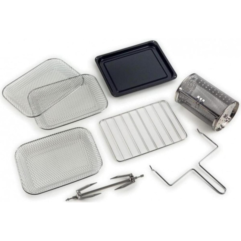 3 корзини з нержавіючої сталі з отворами, корзина з нержавіючої сталі, решітка з нержавіючої сталі, набір вертелів з нержавіючої сталі для смаження і деко для збору жиру