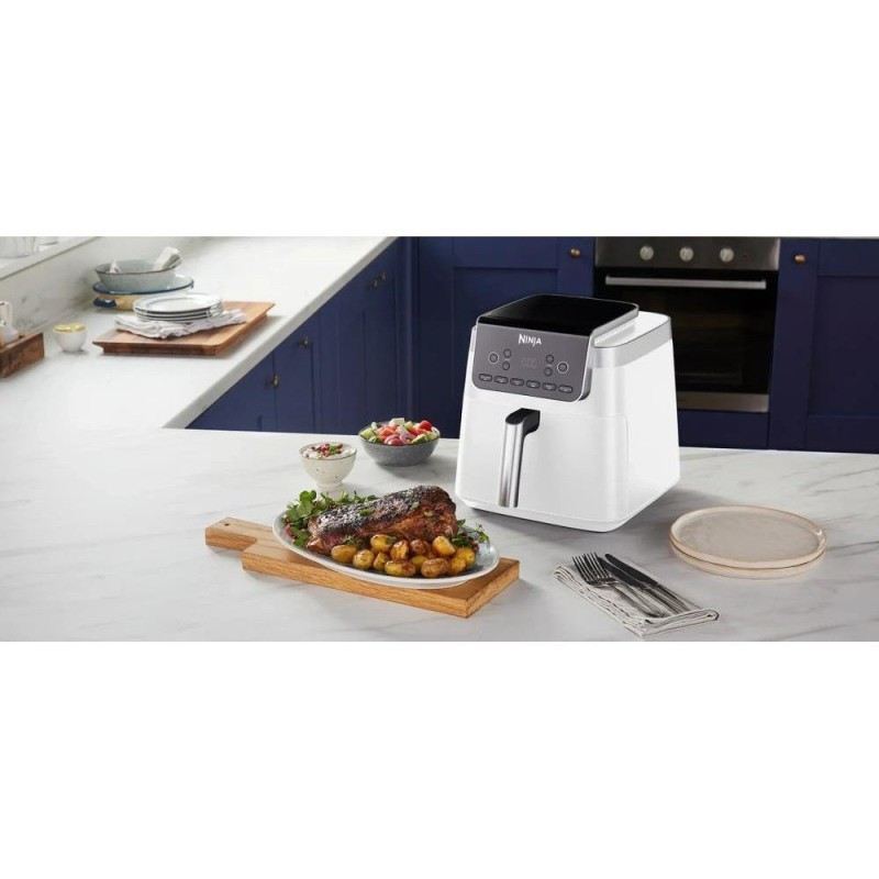 Мультипіч NINJA AF180EUWH - це кухонний пристрій, що поєднує в собі функції аерофритюрниці та мультипечі, призначений для швидкого та здорового приготування різноманітних страв. З потужністю 2000 Вт і об'ємом 6,2 літра, вона дає змогу готувати значні порції їжі, задовольняючи потреби всієї родини.\r\nУправління NINJA AF180EUWH здійснюється за допомогою сенсорної панелі з дисплеєм, забезпечуючи інтуїтивно зрозумілий інтерфейс для вибору потрібних налаштувань. Шість автоматичних програм приготування розширюють кулінарні можливості, даючи змогу готувати різні страви з мінімальними зусиллями. Регульований термостат у діапазоні від 40°C до 240°C надає точний контроль над температурою.\r\nЕлектронний таймер дає змогу точно встановлювати час приготування, забезпечуючи зручність і контроль над процесом готування. Антипригарне покриття всередині чаші полегшує процес очищення і запобігає пригоранню їжі. Знімні частини мультипечі NINJA AF180EUWH, що включають кошик і піддон, можна мити в посудомийній машині.