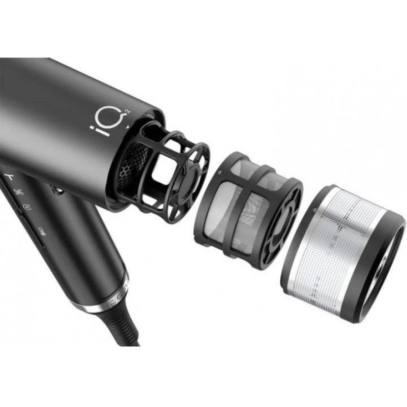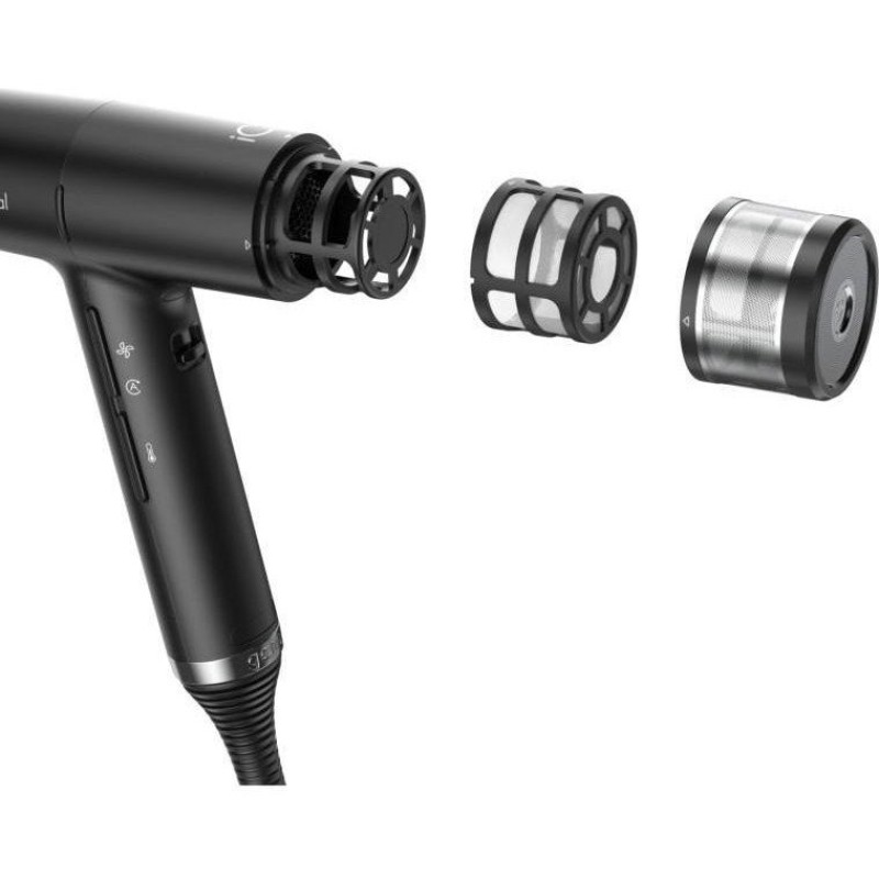 Знімний повітряний фільтр. У комплекті: фен, насадка-дифузор (діаметр 130 мм), насадка-концентратор 95х5 мм, насадка-концентратор 65х7 мм, 3 змінні фільтри тонкого очищення, гумовий килимок, щіточка для очищення фільтра, петелька для підвішування. Технологія активного озону Oxy Active, функція запам'ятовування останніх налаштувань, функція блокування кнопок, функція самоочищення Auto-Clean, безщітковий мотор з технологією Long Life, потужний повітряний потік, система подвійної фільтрації.