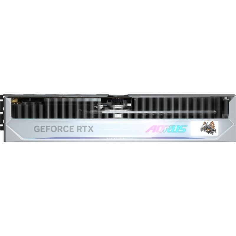 GIGABYTE AORUS GeForce RTX 5080 MASTER ICE 16G (GV-N5080AORUSM ICE-16GD) - високопродуктивна відеокарта, створена на основі архітектури NVIDIA Blackwell і призначена для вимогливих ігор і професійних додатків. Відеокарта оснащена 16 ГБ пам'яті GDDR7 з 256-бітною шиною, забезпечуючи пропускну здатність до 960 ГБ\u002Fс. Базова частота графічного процесора становить 2295 МГц, з можливістю збільшення до 2805 МГц у режимі Boost. Система охолодження WINDFORCE включає три 110-мм вентилятори з унікальним дизайном лопатей, що забезпечують ефективне відведення тепла. Теплові трубки прямого контакту і композитна термопаста сприяють швидкому розсіюванню тепла від GPU та інших компонентів. LCD Edge View дає змогу відображати інформацію про стан системи або користувацькі зображення на бічній панелі відеокарти. RGB Halo забезпечує настроюване підсвічування, синхронізоване з іншими компонентами через RGB Fusion 2.0. Для під'єднання моніторів передбачено три порти DisplayPort 2.1b і один HDMI 2.1b, що підтримують роздільну здатність до 7680x4320 пікселів. Відеокарта використовує інтерфейс PCIe 5.0 x16 для високої пропускної здатності даних. Додаткові функції GIGABYTE AORUS GeForce RTX 5080 MASTER ICE 16G (GV-N5080AORUSM ICE-16GD) включають Dual BIOS для вибору між продуктивним і тихим режимами роботи, посилену конструкцію для підвищення надійності та універсальну підтримку.