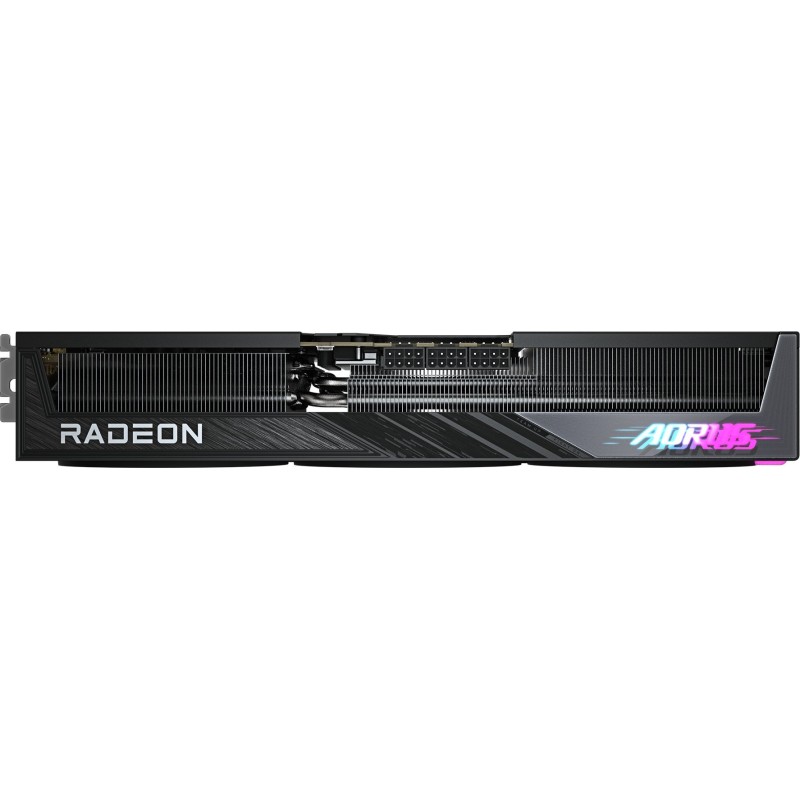 Відеокарта GIGABYTE AORUS Radeon RX 9070 XT ELITE 16G (GV-R9070XTAORUS E-16GD) обладнана графічним процесором AMD Radeon RX 9070 XT, виконаним на архітектурі RDNA 4. Вона має 4096 потокових процесорів і 64 блоки прискорення трасування променів, що забезпечує високу продуктивність у сучасних іграх. Відеокарта оснащена 16 ГБ відеопам'яті типу GDDR6 з 256-бітною шиною та ефективною швидкістю 20 Гбіт\u002Fс, що забезпечує високу пропускну спроможність для опрацювання графіки високої роздільної здатності. Для під'єднання дисплеїв передбачено два порти HDMI 2.1b і два DisplayPort 2.1a, що забезпечує підтримку сучасних моніторів із високою роздільною здатністю та частотою оновлення. Інтерфейс під'єднання до системи - PCIe 5.0 x16, що забезпечує високошвидкісну передачу даних між відеокартою та іншими компонентами системи. Система охолодження WINDFORCE містить три вентилятори Hawk з унікальним дизайном лопатей, що забезпечує зниження опору повітря та рівня шуму, а також збільшує повітряний потік. Додатково використовуються композитні мідні теплові трубки і велика випарна камера для ефективного відведення тепла від GPU. Відеокарту оснащено RGB-підсвіткою Halo, що дає змогу налаштувати візуальні ефекти відповідно до вподобань користувача. GIGABYTE AORUS Radeon RX 9070 XT ELITE 16G (GV-R9070XTAORUS E-16GD) підтримує технології AMD, як-от Smart Access Memory, що дає змогу процесорам AMD Ryzen ефективно використовувати всю відеопам'ять, і FidelityFX Super Resolution 4 (FSR 4) для поліпшення якості зображення та підвищення продуктивності в підтримуваних іграх. Для стабільної роботи відеокарти рекомендується блок живлення потужністю не менше 850 Вт. GIGABYTE надає 4-річну гарантію на цю модель за умови онлайн-реєстрації продукту. Таким чином, GIGABYTE AORUS Radeon RX 9070 XT ELITE 16G (GV-R9070XTAORUS E-16GD) являє собою високопродуктивне рішення для геймерів і професіоналів, забезпечуючи підтримку сучасних технологій і високу якість графіки.