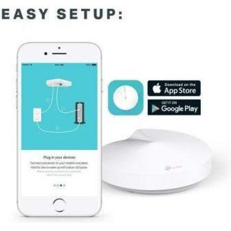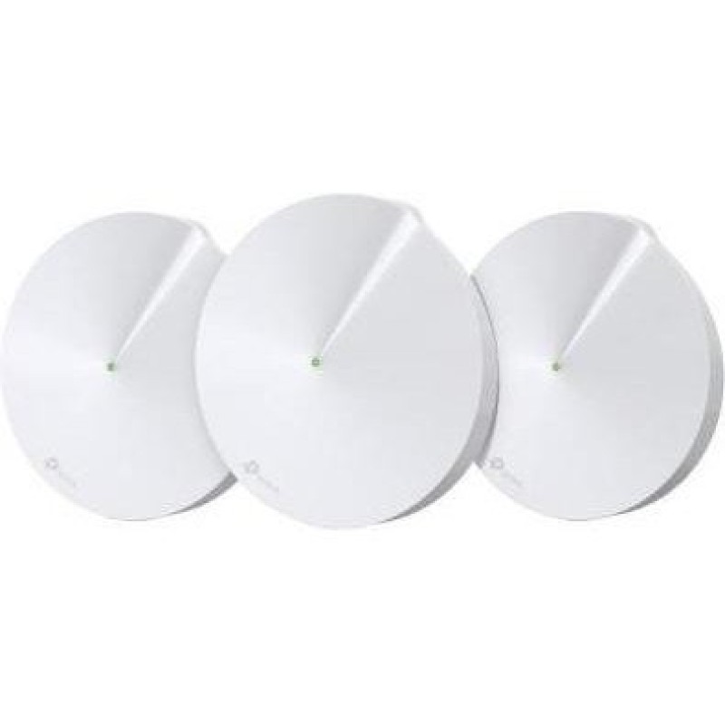 Wi-Fi роутер + Повторювач TP-Link Deco M5 (3-pack) складається з трьох модулів, може покрити, завдяки цій властивості, площа до 550 кв.м. При чому робить це він одночасно в двох частотних діапазонах 5 і 2,4 ГГц, охоплюючи стандарти бездротових мереж IEEE 802.11 ac \u002F n \u002F a \u002F b \u002F g на швидкостях 867 і 400 МБ \u002F с. У свою чергу, частиною інтерфейсу оснащення Wi-Fi роутера + Повторювач TP-Link Deco M5 (3-pack) складається з 2 гігабітних портів LAN \u002F WAN, 1 кнопки Reset знизу і чотирьох вбудованих антен на кожному модулі Deco, а його розмір дорівнює e120 мм x 38 мм. На додаток до всього, модель можна налаштувати через додаток Deco, а всі внутрішні процессі не обходяться без інтегрованого 4-х ядерного процесора.