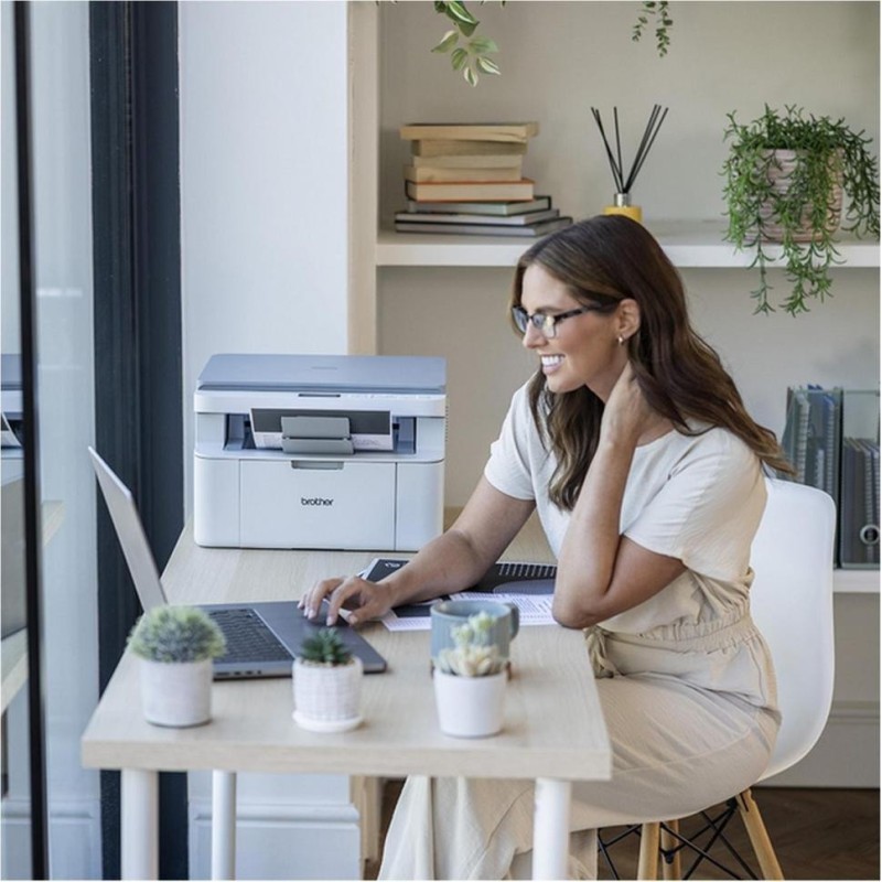 Brother DCP-L1630W Wi-Fi (DCPL1630WYJ1) — це компактний монохромний лазерний БФП початкового класу, орієнтований на домашній офіс, навчання, друк текстових документів і базове сканування без надмірної складності в налаштуванні. Пристрій виконує друк, копіювання та сканування, працює з форматом A4, підтримує бездротове підключення по Wi-Fi, дротову мережу та USB, а також оснащений вбудованою пам’яттю 128 МБ і дворядковим LCD-дисплеєм. За швидкістю Brother DCP-L1630W Wi-Fi (DCPL1630WYJ1) друкує до 20 стор.\u002Fхв, що для базового домашнього та малого офісного сценарію є достатнім рівнем для договорів, навчальних матеріалів, рахунків, заяв і супровідних документів. У конструкції передбачений лоток подачі на 150 аркушів, тому модель краще підходить для помірного щоденного друку, ніж для великих потоків завдань. Важливою особливістю є наявність 5 ГГц Wi-Fi, що корисно в умовах завантаженої домашньої мережі, де 2,4 ГГц уже перевантажений іншими пристроями. Brother DCP-L1630W Wi-Fi (DCPL1630WYJ1) розрахований саме на просте використання: компактний корпус легше розмістити на столі або полиці, а відсутність складнішої офісної механіки спрощує сценарій “підключив і друкуєш”. Brother DCP-L1630W Wi-Fi (DCPL1630WYJ1) варто розглядати як чорно-білий МФУ для тих, кому потрібні Wi-Fi, лазерна технологія, базовий мережевий функціонал і нормальна швидкість друку без переходу на більші й дорожчі моделі.