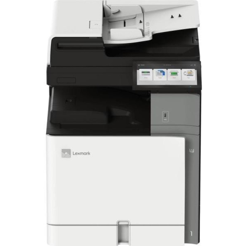 Lexmark CX950se (20L8110) — це кольоровий лазерний БФП класу A3 для великих робочих груп, у якому основний акцент зроблено на формат A3, мережеву інтеграцію та повний офісний функціонал без переходу до надто вузькоспеціалізованих виробничих машин. Пристрій виконує кольоровий друк, копіювання та сканування, підтримує вбудований двосторонній друк і використовує 10,1-дюймовий кольоровий сенсорний екран Lexmark e-Task для керування функціями та робочими сценаріями. За швидкістю Lexmark CX950se (20L8110) друкує та копіює до 25 стор.\u002Fхв у чорно-білому і кольоровому режимах, а час виходу першої сторінки становить близько 7,1 секунди для моно та 8,2 секунди для кольору. Максимальна роздільна здатність друку — 1200 × 1200 dpi з 4800 Color Quality, що робить модель придатною не лише для текстових документів, а й для презентаційних матеріалів, схем, таблиць і друку у форматі A3. У базовій конфігурації Lexmark CX950se (20L8110) має 550-аркушну касету, 150-аркушний багатофункціональний лоток і 500-аркушний вихідний відсік, а підтримка носіїв охоплює A6, A4, A3, SRA3, Ledger, Legal, конверти та інші формати. Для підключення передбачені Gigabit Ethernet, USB Type-A і Type-B, а також Wi-Fi 802.11a\u002Fb\u002Fg\u002Fn\u002Fac з Apple iBeacon. Lexmark CX950se (20L8110) варто розглядати як офісний A3 БФП для середніх і великих підрозділів, де важливі кольоровий друк, великий сенсорний інтерфейс і стабільна робота з різними форматами паперу.
