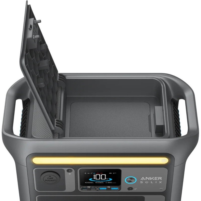 Anker Solix C800 — портативная зарядная станция для резервного питания бытовой электроники, рабочего места и путешествий, объединяющая инвертор переменного тока с аккумулятором LiFePO4 (LFP) и набором выходов под различные устройства. Емкость батареи составляет около 768 Вт·ч, что позволяет питать роутер, ноутбук, телевизор, медицинские приборы небольшой мощности или заряжать несколько гаджетов параллельно; для долговечности LFP-ячейки рассчитаны на тысячи циклов с сохранением большей части емкости. Инвертор формирует чистую синусоиду и поддерживает нагрузку до 1200 Вт (кратковременно больше для пусковых токов), поэтому Anker Solix C800 подходит для техники с импульсными блоками питания и электродвигателями малой мощности. Подключение реализовано через розетки AC, автомобильный 12 В выход и USB-порты, в частности USB-C Power Delivery для быстрой зарядки ноутбуков и смартфонов; доступный режим одновременного питания и зарядки (pass-through), а в отдельных сценариях – быстрое переключение как домашний резерв (EPS&FUPS) для сетевого оборудования. Станцию можно пополнять от сети, автомобильной розетки или солнечных панелей через контроллер заряда, а учащенный сетевой заряд позволяет быстро вернуть запас энергии перед выездом. За безопасность отвечает BMS с защитой от перегрева, перенапряжения, перегрузки и короткого замыкания, а активное охлаждение стабилизирует работу под длительными нагрузками. Для удобства есть дисплей с индикацией мощности и остатка, ручка для переноски; вес обычно около 10-11 кг. Если требуется компактный источник 230 В и мощный USB для дома или выездов, Anker Solix C800 дает сбалансированный запас энергии и современные интерфейсы.