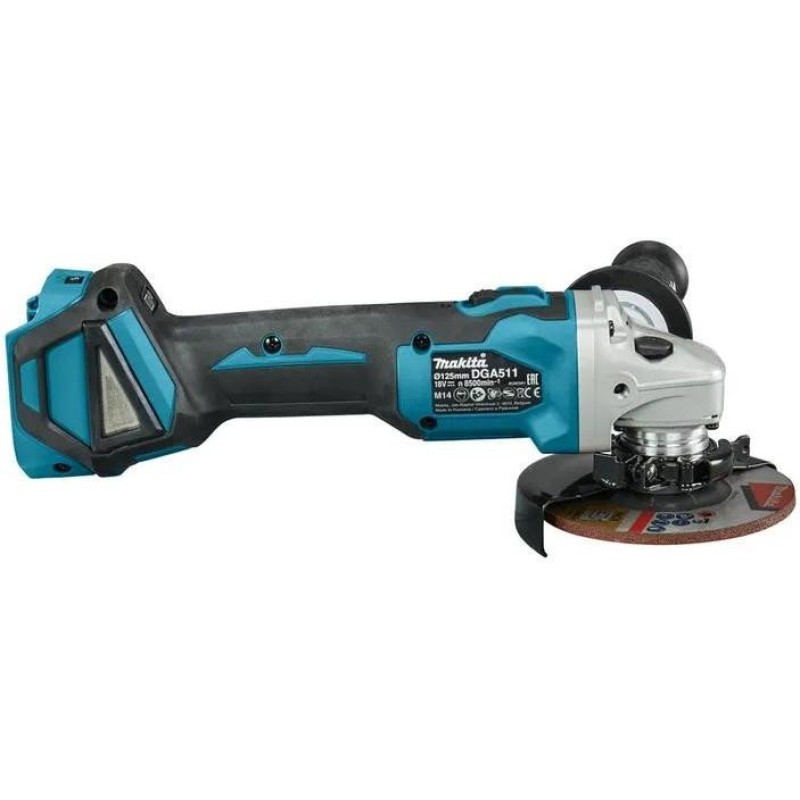 Аккумуляторная болгарка Makita DGA511Z благодаря безщеточному двигателю может использоваться как в быту, так и на производстве для обработки, резки и шлифовки изделий и предметов из камня, синтетического бетона, металла, пластмассы и других строительных материалов. За вопросы мощности и автономности в данной модели отвечает емкий аккумулятор, способный обеспечить стабильные показатели скорости вращения пильного полотна в пределах 3000-8500 об/мин. Резиновая ручка, а также возможность установки боковой дополнительной рукоятки способствуют полному контролю над управлением инструментом при резке и других работах. Чтобы избежать отдачу и возможные механические повреждения самого инструмента в шлифовальной машине предусмотрена функция плавного пуска. Makita DGA511Z оснащена множеством инновационных технологий. eXtreme Protection обеспечивает максимальную защиту от пыли, мусора и жидкостей для оптимальной работы в экстремальных условиях. Active Feedback Sensing Technology автоматически отключает инструмент при резком падении скорости вращения. Технология автоматического крутящего момента регулирует крутящий момент и скорость в соответствии с условиями погрузки. Дополнительно Makita DGA511Z комплектуется защитным кожухом, имеет блокировку кнопки включения и позволяет работать с разными абразивными кругами, диаметром 125 мм, и резьбой шпинделя М14.