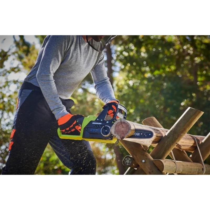 Аккумуляторная электропила Ryobi OCS1830 разработана как автономный компактный и экологичный инструмент. Она оборудована поперечно расположенным бесщеточным двигателем мощностью 2300 Вт (3,13 л.с.), который питается от литий-ионного аккумулятора напряжением 18 В. Цепь с шагом 3' вращается по шине длиной 300 мм. Ее скорость движения составляет 10 мс, а натяжение регулируется без использования инструментов. Цепь автоматически смазывается смазкой из бачка объемом 0,21 литра. Для экстренной остановки она оснащена механическим и электрическим тормозом. Обладая небольшими размерами и малым весом (3,2 кг), модель будет востребована при работе в ограниченном пространстве, на высоте и вдали от источников энергии. Электропила Ryobi OCS1830 снабжена эргономичной рукояткой, покрытой нескользящей резиной, и антивибрационной системой, благодаря которой снижается нагрузка на руки.