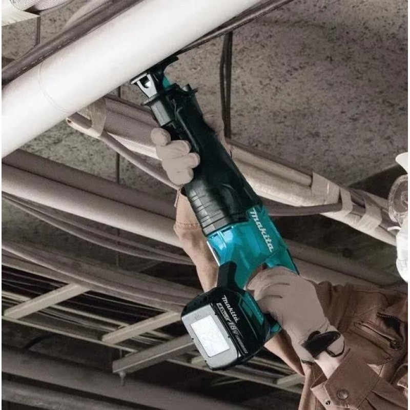 Данная сабельная пила Makita DJR187Z показывает отличные и эффективные результаты в процессе резки дерева или металла, благодаря чему имеет широкую область использования. Высококачественная и производительная работа осуществляется за счет Li-Ion аккумулятора, который способен за короткое время разогнать режущее полотно до 3000 ход/мин, а электронная регулировка оборотов позволит максимально точно и легко выполнить распил как дерева, глубиной до 255 мм, так и стальной трубы. Легкая и компактная пила Makita DJR187Z для длительной комфортной работы оснащена D-образной рукояткой с прорезиненными вставками, благодаря чему инструмент будет надежно и удобно размещаться в руке. Следует также отметить, что замена пильного полотна и регулировка упора производится без помощи инструмента, так что вам будет обеспечена высокая эффективность работы инструмента. Среди других преимуществ сабельной пилы есть блокировка кнопки включения, подсветка и набор пил.