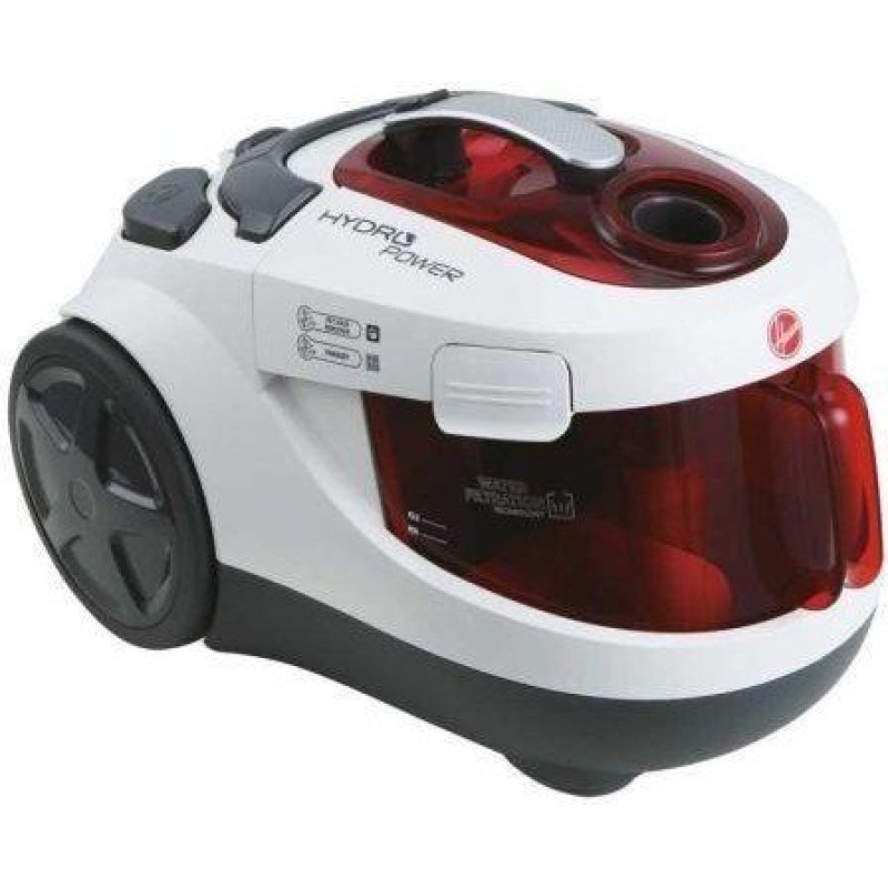 Пылесос с аквафильтром Hoover HY71PET 011 выпускается в стильном современном корпусе белого и красного цвета с серыми деталями. Аппарат, оборудованный двигателем мощностью 700 Вт, служит для сухой уборки. Он перемещается по большим колесам, а переносится за удобную ручку. Сила всасывания регулируется переключателем на корпусе, уровень шума в максимальном режиме не превышает 80 дБ. Особенностью модели является сочетание циклонической системы и аквафильтра, благодаря чему пыль вместе с аллергенами эффективно отделяется от воздушного потока и задерживается водой. Комплект насадок включает в себя шесть аксессуаров, включая турбощетки и насадку для паркета. С их помощью качественно очищаются также жесткие и ковровые покрытия, мягкая мебель и труднодоступные места. Радиус действия пылесоса с аквафильтром Hoover HY71PET 011 составляет 7,6 метра.