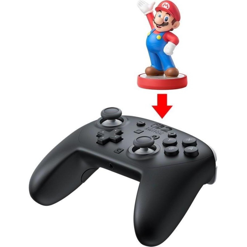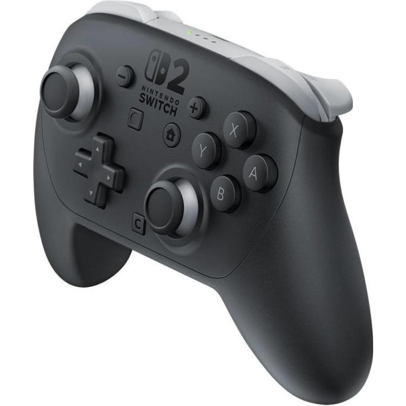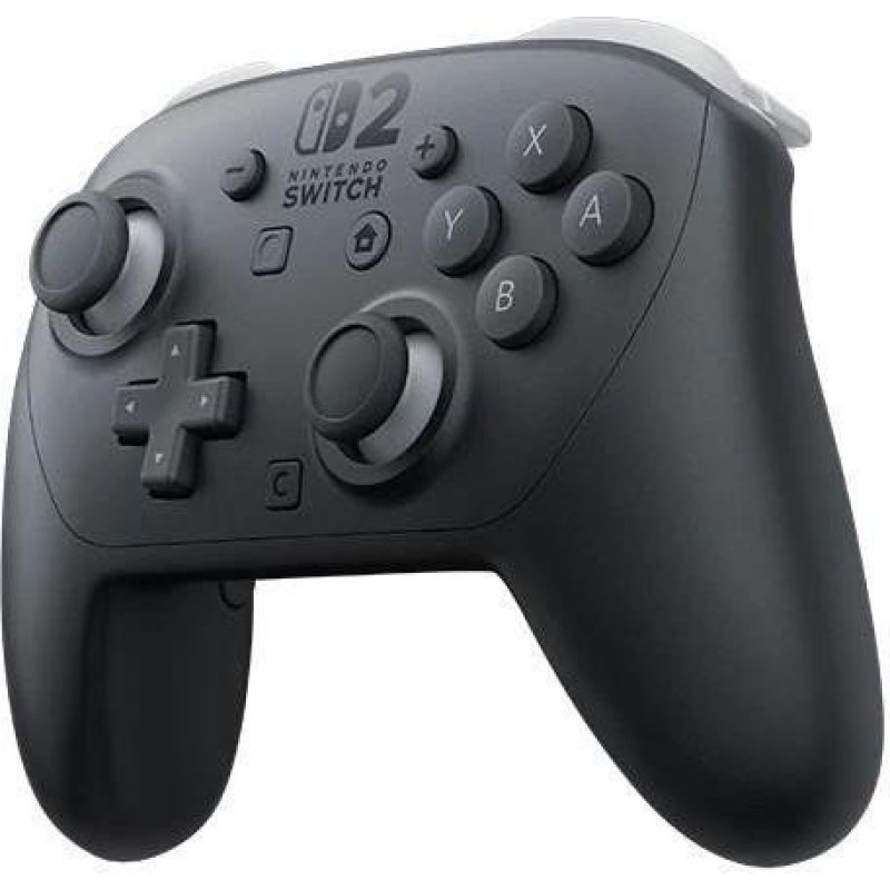 Nintendo Switch 2 Pro Controller (45496321475) — беспроводной геймпад для консоли Nintendo Switch 2, рассчитанный на пользователей, которым требуется полноразмерное управление для длительных игровых сессий, более точного контроля в экшенах, гонках, файтингах и. Модель поддерживает беспроводное подключение через Bluetooth, оснащена модулем NFC, акселерометром и гироскопом, а также виброотзывом HD rumble 2, что позволяет более точно передавать движения, наклоны и тактильные эффекты в совместимых играх. Nintendo Switch 2 Pro Controller (45496321475) имеет порт USB Type-C для зарядки, встроенный литий-ионный аккумулятор емкостью 1070 мАч, обеспечивает до 40 часов автономной работы и заряжается примерно за 3,5 часа, поэтому контроллер подходит для регулярного использования. Отдельно стоит отметить наличие кнопки C для быстрого доступа к меню GameChat, двух дополнительных кнопок GL&FGR, которым можно назначать нужные команды, а также 3,5-мм аудиоразъем для наушников или гарнитуры. За счет этого Nintendo Switch 2 Pro Controller (45496321475) можно использовать не только как стандартный беспроводной контроллер, но и более функциональное решение для игр, где важны переназначения кнопок, голосовой чат и стабильная беспроводная работа. В комплекте предусмотрен кабель USB для зарядки, поэтому контроллер готов к подключению и последующему использованию сразу после распаковки.