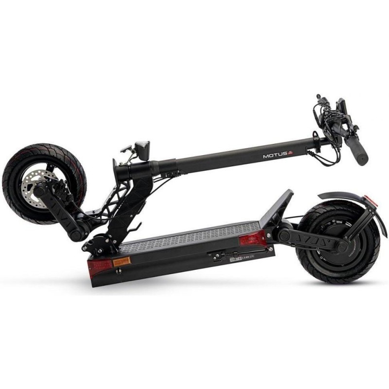 Motus PRO 10 побудований на посиленій алюмінієвій рамі, доповненій надійною складною системою, що дає змогу без зусиль перевозити або зберігати самокат в обмеженому просторі. Регульоване за висотою кермо адаптується під зріст користувача, а широка дека з протиковзким покриттям забезпечує стійке положення навіть під час активної їзди.\r\n\r\nВ основі - два незалежні електродвигуни по 1000 Вт, що розвивають у сумі до 2000 Вт потужності, завдяки чому самокат здатний прискорюватися до 65 км\u002Fгод і справлятися з підйомами до 20%. Потужний акумулятор на 22,4 А-год при напрузі 65 В дає автономність до 85 км, залежно від навантаження і рельєфу, а повна зарядка займає від 10 до 12 годин.\r\n\r\nДля адаптації до різних дорожніх умов Motus PRO 10 обладнаний пневматичними 10-дюймовими колесами з вираженим протектором і дворівневою системою амортизації: спереду і ззаду встановлені гідравлічні амортизатори, що знижують вібрації на нерівних покриттях. Гальмівна система представлена дисковими гальмами на обох колесах, а додаткове електронне гальмо підвищує контроль під час зниження швидкості.\r\n\r\nВбудований дисплей на кермовій колонці відображає актуальні показники руху, включно із зарядом акумулятора, швидкістю та пройденою відстанню. Для безпечного пересування в темний час доби передбачені яскрава фара, заднє підсвічування і сигнальні вогні. Самокат витримує навантаження до 150 кг, а його кліренс становить 16 см - цього достатньо для впевненого подолання невеликих перешкод.