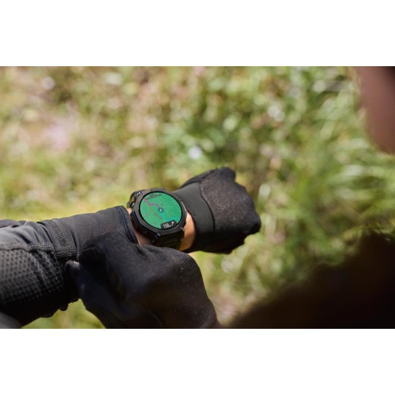 Amazfit T-Rex 3 Pro - це захищений спортивний смарт-годинник з корпусом діаметром 44 або 48 мм, розрахований на роботу в екстремальних умовах і тривалу автономність. Модель використовує AMOLED-дисплей 1,32" або 1,5" з роздільною здатністю до 480×480 пікселів і піковою яскравістю близько 3000 ніт, що забезпечує хороше читання на сонці, а поверхня екрана захищена сапфіровим склом з високою стійкістю до подряпин. Безель і кнопки Amazfit T-Rex 3 Pro виконані з титану 5-го класу, основа корпусу - полімер, що дозволяє поєднувати ударостійкість і відносно невелику вагу. Заявлено водозахист 10 ATM з можливістю використання під час рекреаційного дайвінгу до 45 м і роботу за температур приблизно від -30 до +70 °C. Годинник оснащений дводіапазонним GPS з підтримкою шести супутникових систем, функцією офлайн-карт, навігацією з покроковими підказками і перерахунком маршруту, а також спеціальними картами гірськолижних курортів із відображенням підйомників і рівнів складності трас. Для спорту передбачено понад 180 режимів, включно з бігом трейлами, трекінгом, силовими тренуваннями, плаванням і дисциплінами витривалості; доступний розрахунок VO2 max, навантаження, часу відновлення, варіабельності пульсу, якості сну і комплексний показник BioCharge Energy Score на базі датчика BioTracker 6.0 PPG. Вбудовані мікрофон і динамік дають змогу приймати Bluetooth-дзвінки й отримувати голосові повідомлення, а двоколірний світлодіодний ліхтарик має стандартні режими, посилений режим і сигнал SOS. Автономність Amazfit T-Rex 3 Pro у змішаному режимі використання досягає приблизно 25-26 днів, за безперервної роботи GPS - до кількох десятків годин залежно від профілю активності та налаштувань енергоощадження, що робить пристрій зручним для багатоденних походів та інтенсивних тренувальних циклів.