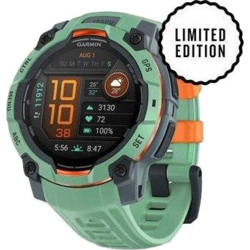 Garmin Instinct 3 - це міцний GPS-смарт-годинник, представлений у січні 2025 року на виставці CES. Він призначений для активних користувачів, яким необхідні надійні та функціональні пристрої для різних видів діяльності. Instinct 3 доступний у двох варіантах: з яскравим 1,2-дюймовим AMOLED-дисплеєм і з монохромним MIP-дисплеєм із функцією сонячної підзарядки. AMOLED-версія забезпечує чітке і насичене зображення, а MIP-модель пропонує практично необмежений час роботи від батареї завдяки сонячній енергії. Корпус Garmin Instinct 3 виконаний з армованого волокном полімеру з металевим безелем і стійким до подряпин екраном, відповідаючи військовим стандартам MIL-STD 810 щодо стійкості до тепла, ударів і води до 100 метрів. Вбудований ліхтарик з регульованою яскравістю, червоним світлом і стробоскопічним режимом підвищує видимість і безпеку в темний час доби. Функціональність Instinct 3 охоплює моніторинг здоров'я і фітнесу, як-от частота серцевих скорочень, рівень кисню в крові, моніторинг сну і стресу. Годинник підтримує понад 30 спортивних режимів і має вбудований GPS для точного відстеження активності на відкритому повітрі. Залежно від моделі, час роботи Garmin Instinct 3 від батареї варіюється: версія з AMOLED-дисплеєм забезпечує до 24 днів роботи в режимі смарт-годинника, а MIP-модель із сонячним заряджанням може працювати практично нескінченно за достатнього освітлення.