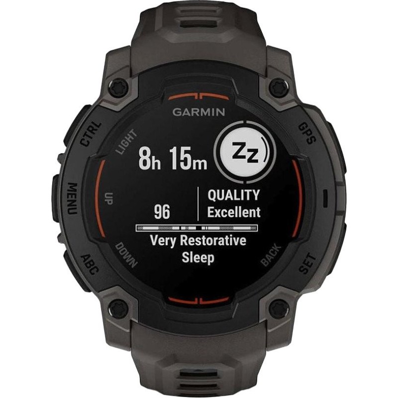 Garmin Instinct 3 - це міцний GPS-смарт-годинник, представлений у січні 2025 року на виставці CES. Він призначений для активних користувачів, яким необхідні надійні та функціональні пристрої для різних видів діяльності. Instinct 3 доступний у двох варіантах: з яскравим 1,2-дюймовим AMOLED-дисплеєм і з монохромним MIP-дисплеєм із функцією сонячної підзарядки. AMOLED-версія забезпечує чітке і насичене зображення, а MIP-модель пропонує практично необмежений час роботи від батареї завдяки сонячній енергії. Корпус Garmin Instinct 3 виконаний з армованого волокном полімеру з металевим безелем і стійким до подряпин екраном, відповідаючи військовим стандартам MIL-STD 810 щодо стійкості до тепла, ударів і води до 100 метрів. Вбудований ліхтарик з регульованою яскравістю, червоним світлом і стробоскопічним режимом підвищує видимість і безпеку в темний час доби. Функціональність Instinct 3 охоплює моніторинг здоров'я і фітнесу, як-от частота серцевих скорочень, рівень кисню в крові, моніторинг сну і стресу. Годинник підтримує понад 30 спортивних режимів і має вбудований GPS для точного відстеження активності на відкритому повітрі. Залежно від моделі, час роботи Garmin Instinct 3 від батареї варіюється: версія з AMOLED-дисплеєм забезпечує до 24 днів роботи в режимі смарт-годинника, а MIP-модель із сонячним заряджанням може працювати практично нескінченно за достатнього освітлення.
