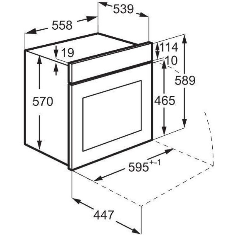 Діапазон температур: 50°C - 250°C. Вентилятор охолодження починає працювати автоматично, коли духовка увімкнена. Галогенове освітлення