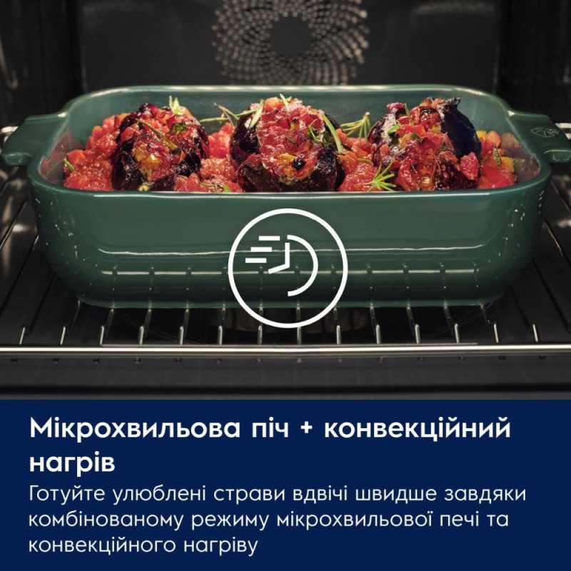 Автоматичні налаштування та відмінні результати з функцією Assisted Cooking6 функція допомоги при приготуванні підказує найкращі налаштування для приготування різних страв. Потужність мікрохвильової печі: 1000 Вт. Функція швидкого нагрівання духової шафи. Функція пам'яті для параметрів духової шафи, що часто використовуються. Індикатор залишкового тепла. Галогенове освітлення духової шафи. Діапазон температур: 30°C - 250°C