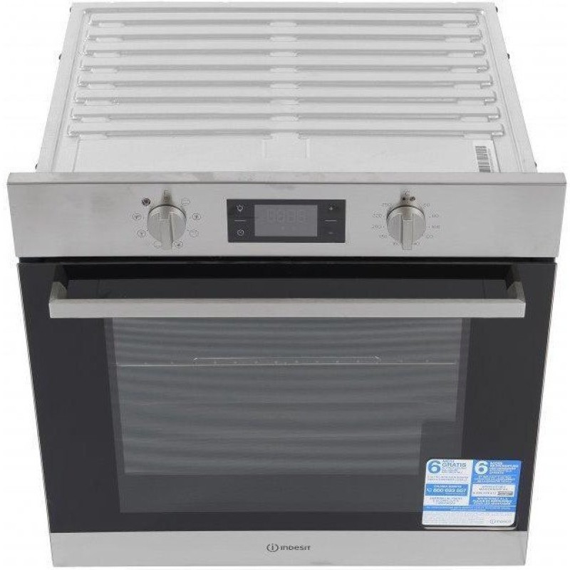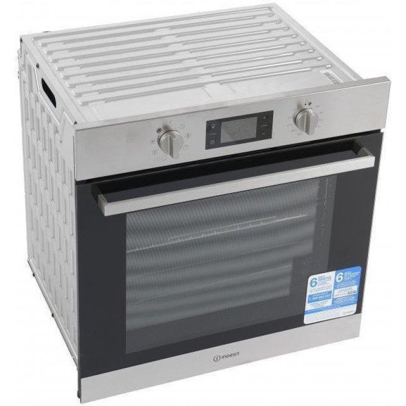 Електрична вбудована духовка Indesit IFW 6544 IX виконана в сучасному дизайні і гармонійно впишеться в кухонний інтер'єр. Модель, об'ємом 71 літр, обладнана вентилятором, який здійснює циркуляцію гарячого повітря по всьому простору духової камери, забезпечуючи в ньому рівну температуру і високу якість їжі, що готується. Внутрішні стінки покриті термостійкою емаллю, яка легко чиститься традиційним ручним способом. Вбудований гриль дозволить приготувати ароматне м'ясо з рум'яною і хрусткою скоринкою і соковитим всередині, що неодмінно порадує любителів м'ясних страв. За допомогою електронного таймера встановлюється час приготування їжі і створюється додатковий комфорт при використанні приладу. Управляється електрична духовка Indesit IFW 6544 IX сенсорними кнопками і механічними поворотними перемикачами, що регулюють режими і температуру нагрівання.