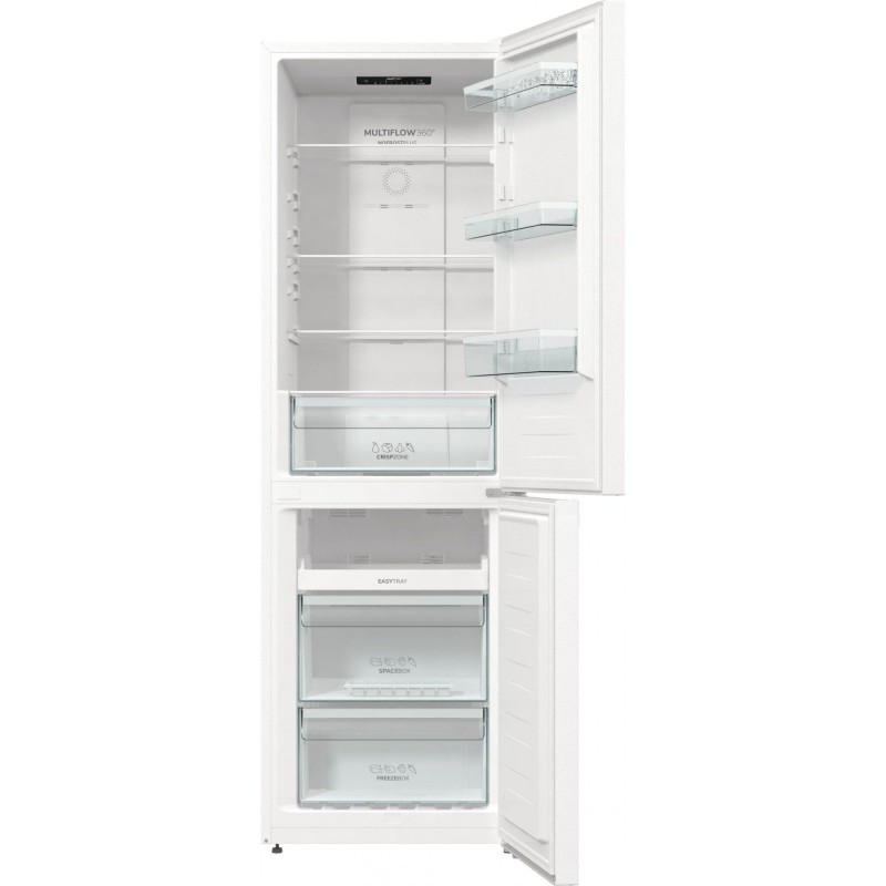 Холодильник з морозильною камерою Gorenje NRK6191PW4 виготовлений в двухдверном виконанні в традиційному білому кольорі. Він відноситься до класу енергоспоживання А + і управляється електронними кнопками з внутрішнім дисплеєм. В агрегаті реалізована одноконтурна схема охолодження з одним поршневим компресором, рівень шуму якого не перевищує 38 дБ. Холодильна камера об'ємом 203 літри обладнана багатопотокової системою охолодження MultiFlow 3600 рівномірно розподіляє холод по всьому внутрішньому простору. Завдяки технології AdaptTech температура у відділенні підтримується на постійному рівні, незалежно від частоти відкривання дверцят. Секція оснащена 4 скляними полками і містким ящиком для тривалого зберігання овочів і фруктів CrispZone. Нижній морозильний відсік ємністю 99 літрів за допомогою функції FastFreeze в прискореному режимі заморожує продукти, зберігаючи всі їх корисні властивості. Обидві камери холодильника Gorenje NRK6191PW4 не вимагають ручного розморожування - вони оснащені системою No Frost.