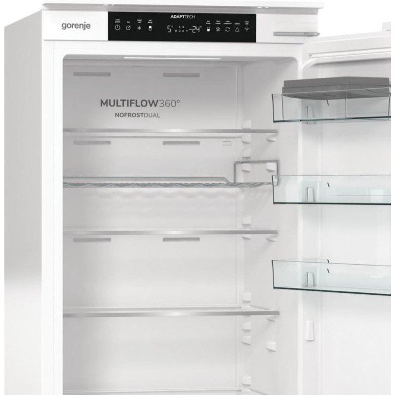 Металева полиця для пляшок. Технологія AdaptTech: розумна система підтримує постійну температуру в холодильнику незалежно від того, як часто ви відкриваєте дверцята. Завдяки функції ConvertActive достатньо натиснути кнопку, щоб перетворити морозильну камеру на холодильну або велику зону ZeroZone, забезпечивши більше місця для зберігання закусок або напоїв. Багатофункціональний контейнер із герметичною кришкою ідеально підходить для зберігання сиру, цибулі та інших продуктів із сильним запахом. Дверцята холодильника мають достатньо місця для зберігання найбільших скляних або пластикових пляшок. Спеціальний упор утримує предмети на місці, запобігаючи їх зміщенню та пошкодженню під час відчинення або закривання дверцят.