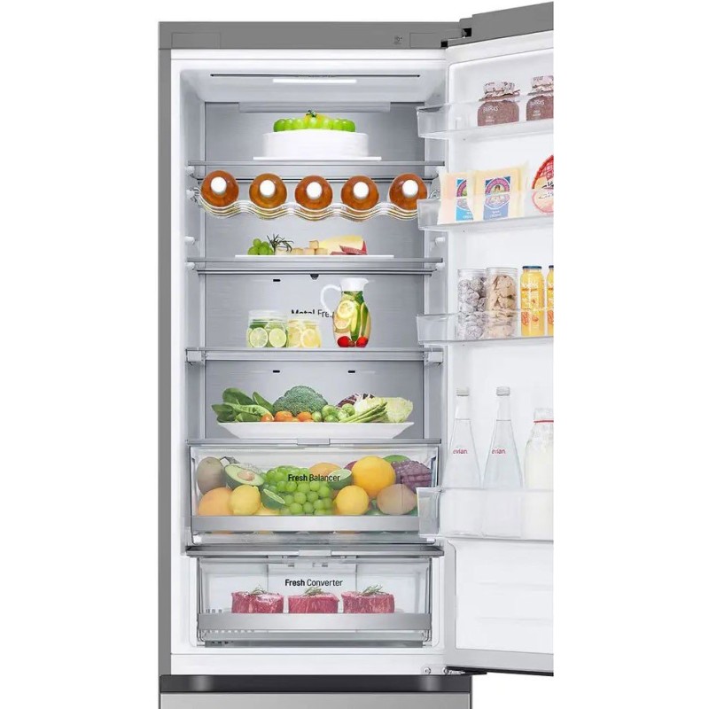 Технологія DoorCooling+: вентиляційні отвори на передній панелі холодильника допомагають підтримувати потрібну температуру, щоб продукти залишалися свіжими. Технологія NatureFRESH для свіжості овочів та фруктів. Металева полиця для пляшок. Металева пластина на задній стінці є додатковим джерелом охолодження