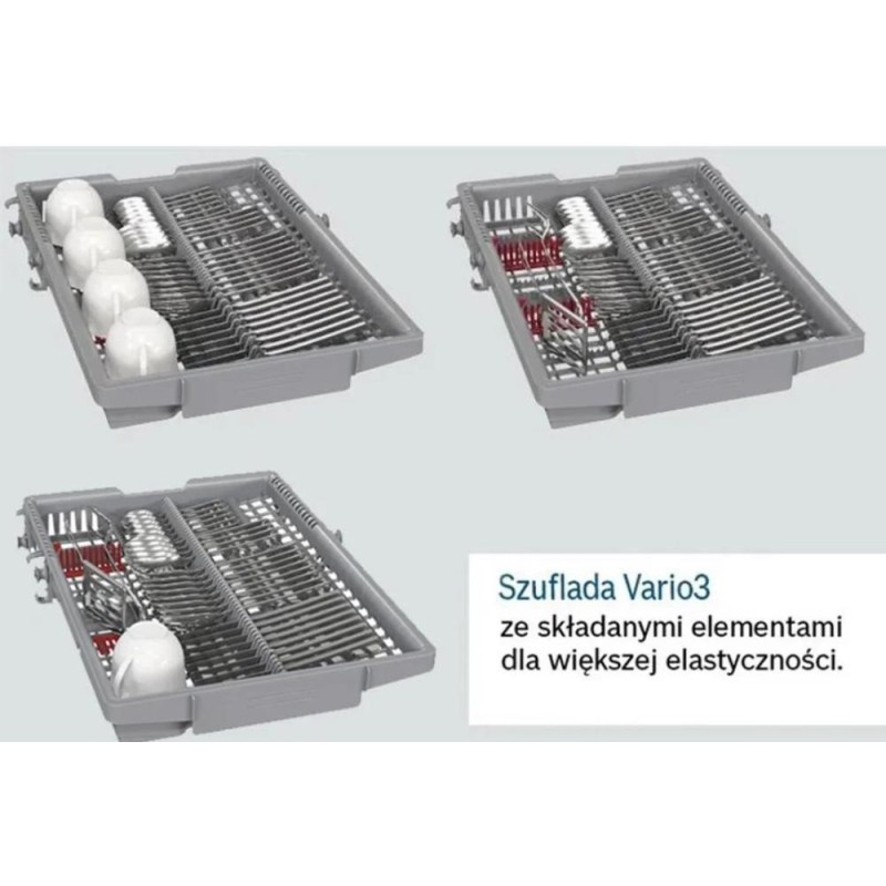 EfficientDry: більш ефективне сушіння завдяки автоматичному відкриванню дверцят. Підтверджений рівень гігієни у програмі Eco 50°C та підвищений рівень гігієни у програмах Intensive/Pots 70°C та Machine Care. Скорочення часу програми SpeedPerfect Plus. MachineCare – програма очищення посудомийної машини. Регулювання висоти корзини у системі Rackmatic