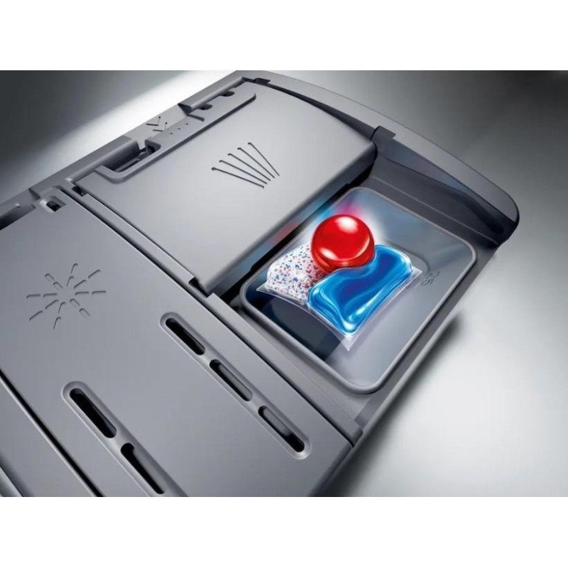 Функція ExtraDry забезпечує виключно ретельне сушіння посуду завдяки вищій температурі під час ополіскування та більш тривалій фазі сушіння. RackMatic система регулювання за висотою: місткий верхній короб можна регулювати за висотою в цілому на 5 см між трьома положеннями. Скорочення часу програми SpeedPerfect Plus. Віддалений моніторинг та керування Home Connect