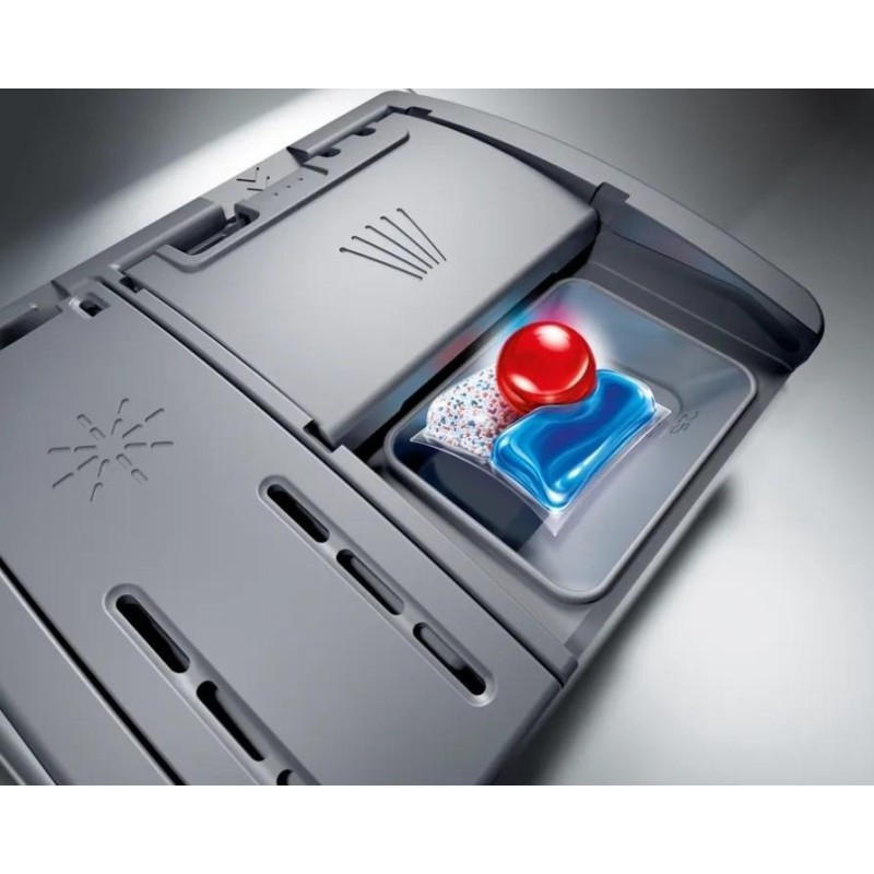 Функція ExtraDry забезпечує виключно ретельне сушіння посуду завдяки вищій температурі під час ополіскування та більш тривалій фазі сушіння. Скорочення часу програми SpeedPerfect Plus. MachineCare – програма очищення посудомийної машини. InfoLight: червоний індикатор на підлозі перед посудомийною машиною, що повідомляє про те, що прилад працює.